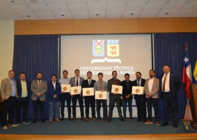 En una solemne ceremonia institucional, la Universidad Técnica Federico Santa María hizo entrega de las certificaciones correspondientes a los estudiantes que participaron de la octava versión del Diploma en Mantenimiento Industrial y de la primera edición del Diploma en Sistemas Integrados de Gestión, ambos impartidos por el Departamento de Mecánica y respaldados por la Dirección General de Asistencia Técnica de la Casa de Estudios.