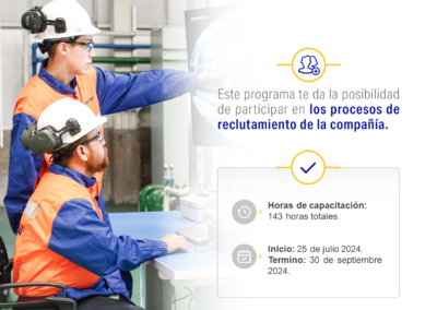 Esta capacitación se realiza a través de un precontrato SENCE, por lo que a través de la Plataforma de Capacitación del Centro de Formación Komatsu (CFK), los alumnos pueden acceder a los cursos de la malla del Programa en modalidad 100% e-learning (asincrónico).