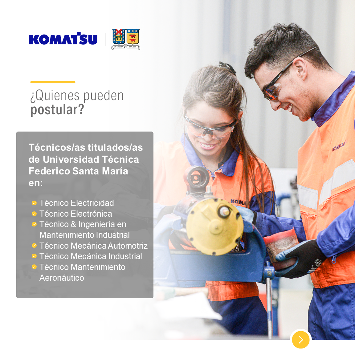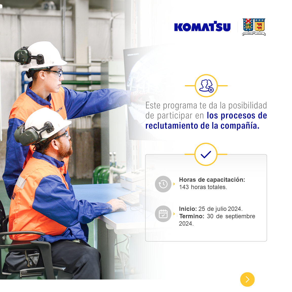 El objetivo es dotar al estudiante con las herramientas y conocimientos necesarios para desempeñarse en la industria, en cargos correspondientes a un técnico base para mantenimiento en equipos Komatsu.