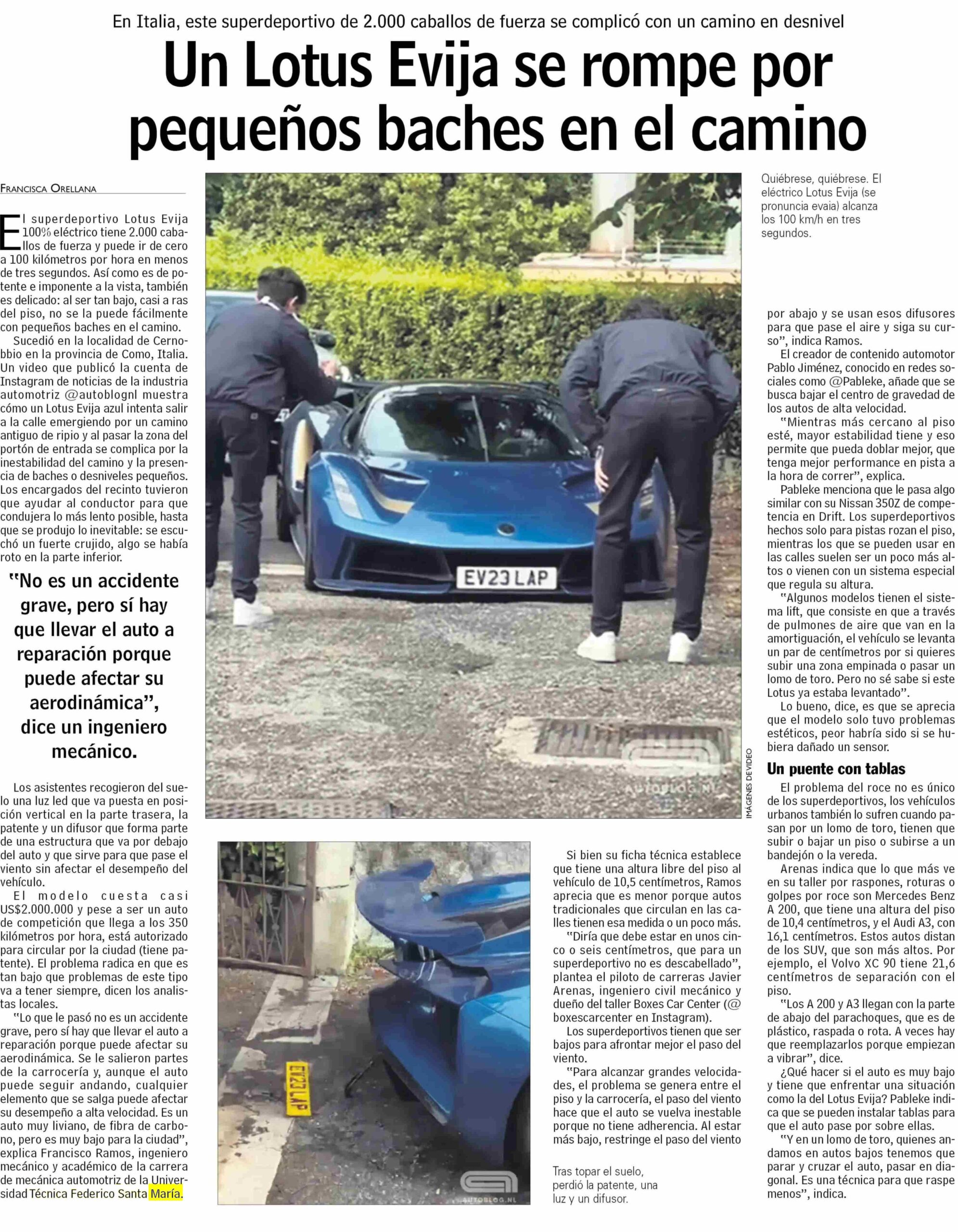 Un Lotus Evija se rompe por pequeño baches en el camino 9 - Junio - 2024 Fuente: Las Últimas Noticias