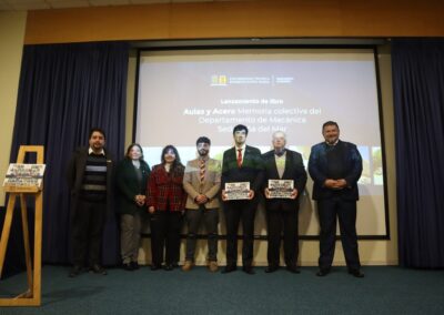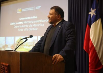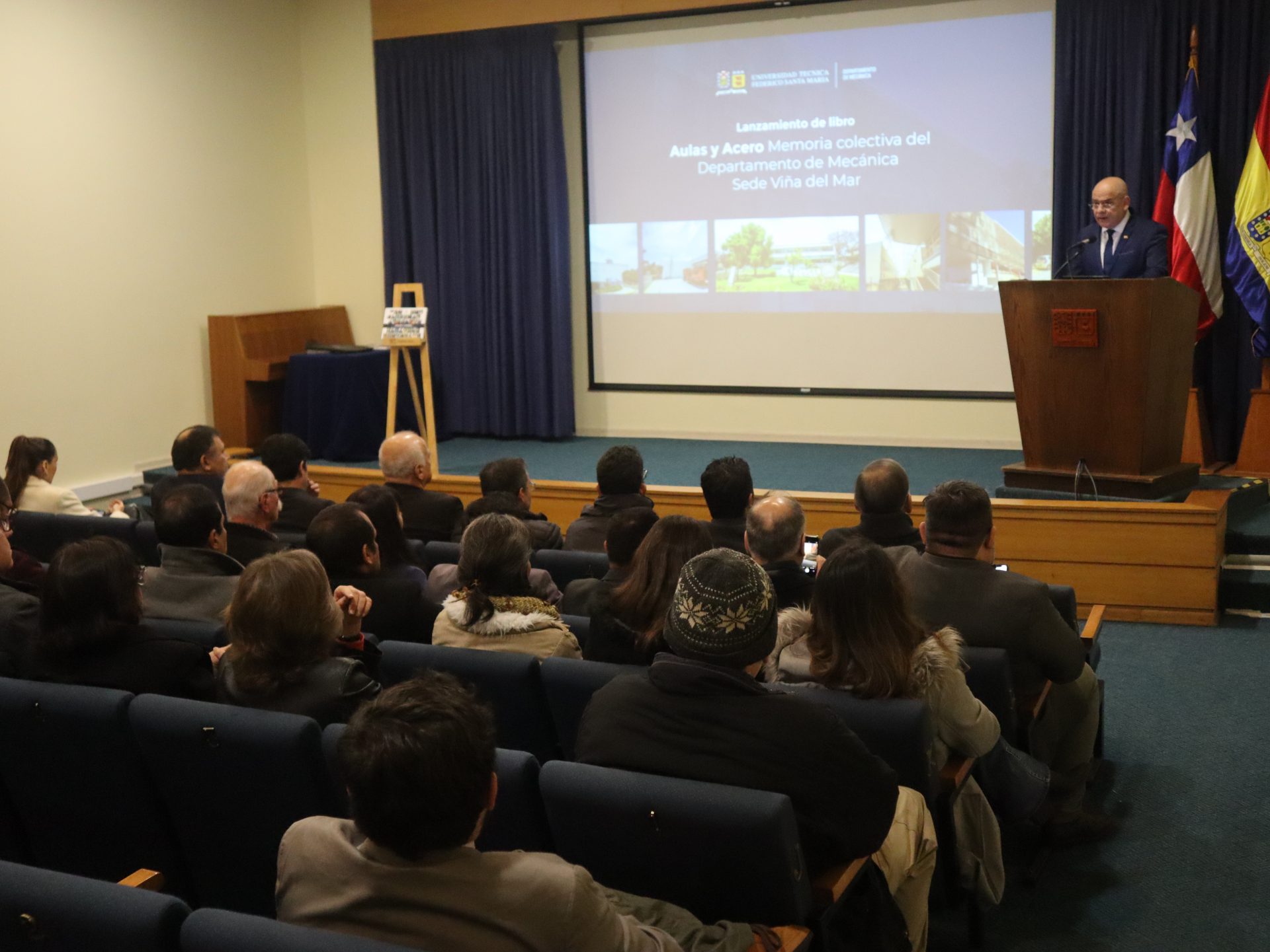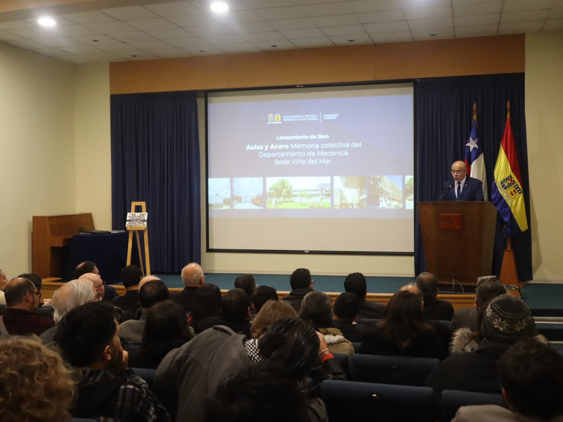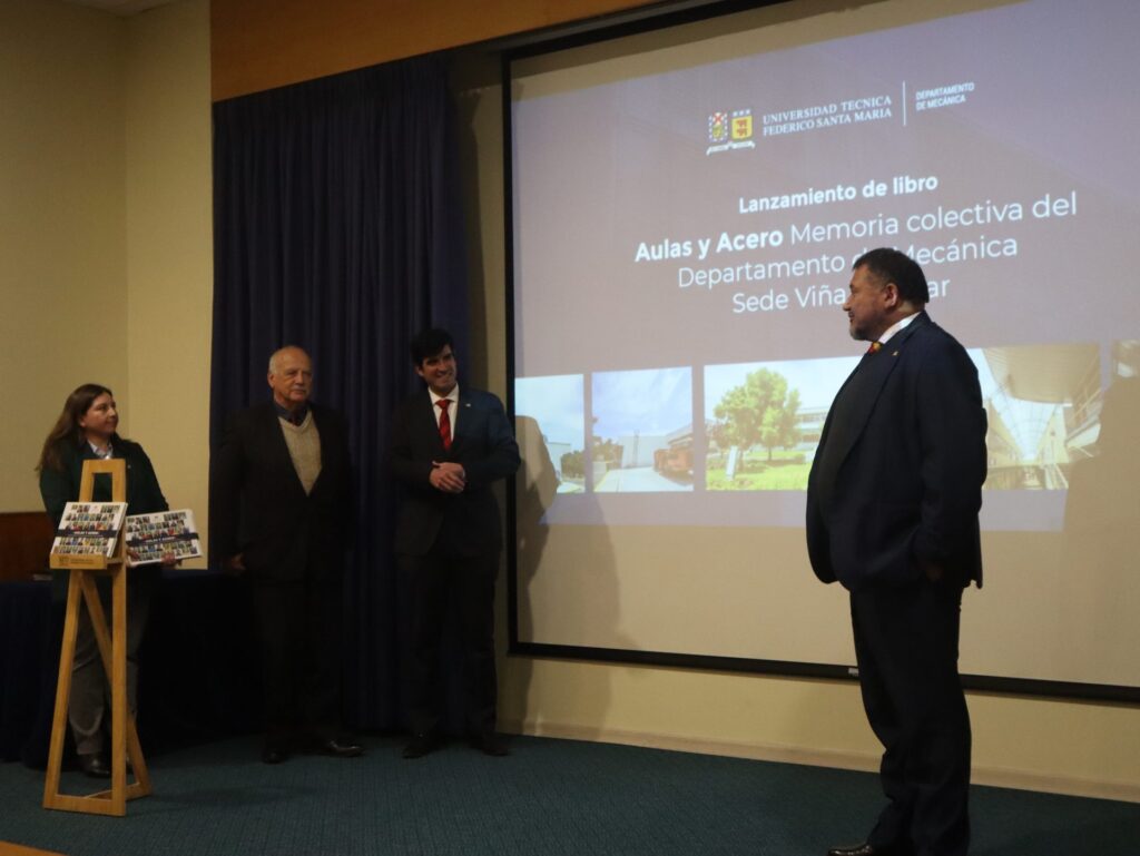 En una emotiva ceremonia realizada en el salón de honor de la sede Viña del Mar de la Universidad Técnica Federico Santa María, el Departamento de Mecánica presentó su libro «Aulas y Acero: Memoria Colectiva del Departamento de Mecánica». Esta obra reúne historias, vivencias, anécdotas y experiencias, trazando un emotivo viaje desde los inicios del Departamento hasta el presente.